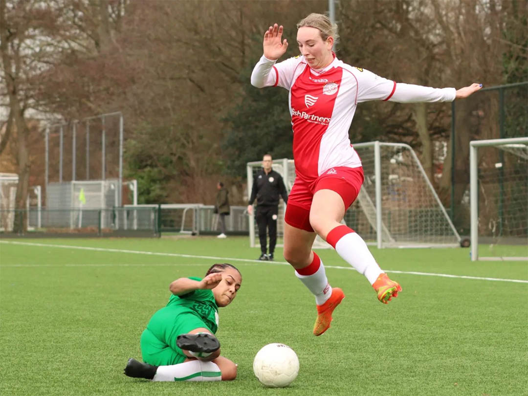 Vier minuten later lag echter de 1-1 al in het net. Captain Angela van de Groep legde de bal vanuit een vrij trap op het hoofd van Nadia Hartog die hem heerlijk binnen kopte.