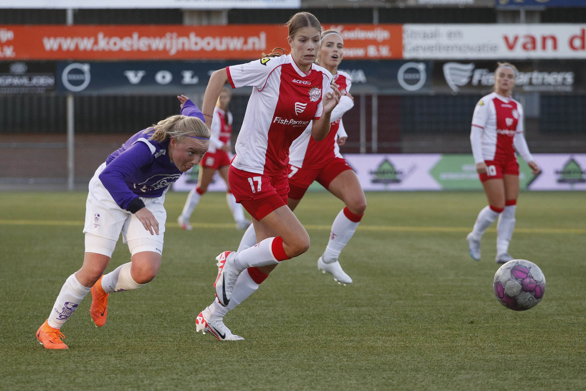 | Nadia Hartog nam, na goed voorbereidend werk van Alice van Diermen, het openingsdoelpunt voor haar rekening. |