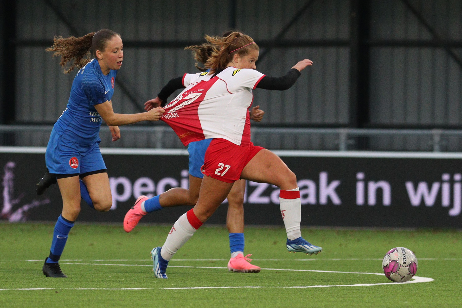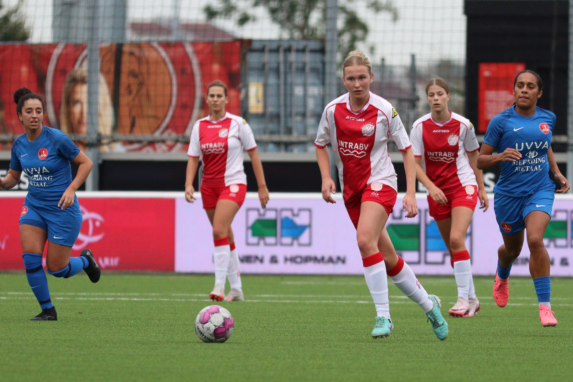 Het duurde tot de 30e minuut voor we een gevaarlijk moment voor de Rooien zagen, toen Esri de Harder na terugleggen van Lisa Zwaan de bal net naast het doel schoot. UVV was in de 36e minuut nog dichtbij een treffer, maar de bal ging rakelings voorlangs.