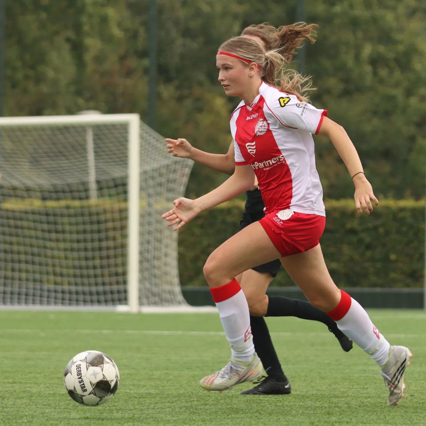 Daarna was het verbijsterend om te zien dat drie kansen gelijk drie goals opleveren voor UVV. De 1-0 viel na een aanval door het midden waarbij Tessa Koelewijn zich leek te verstappen wat gelijk werd afgestraft met een goed hoog schot. Jonne Odding tikte de bal nog aan, maar tevergeefs. Vijf minuten gespeeld en 1-0 achter. Drie minuten later stond het 2-0, een schot van buiten de zestien waar Jonne wederom nog aanzat, maar opnieuw was het schot haar net te machtig.